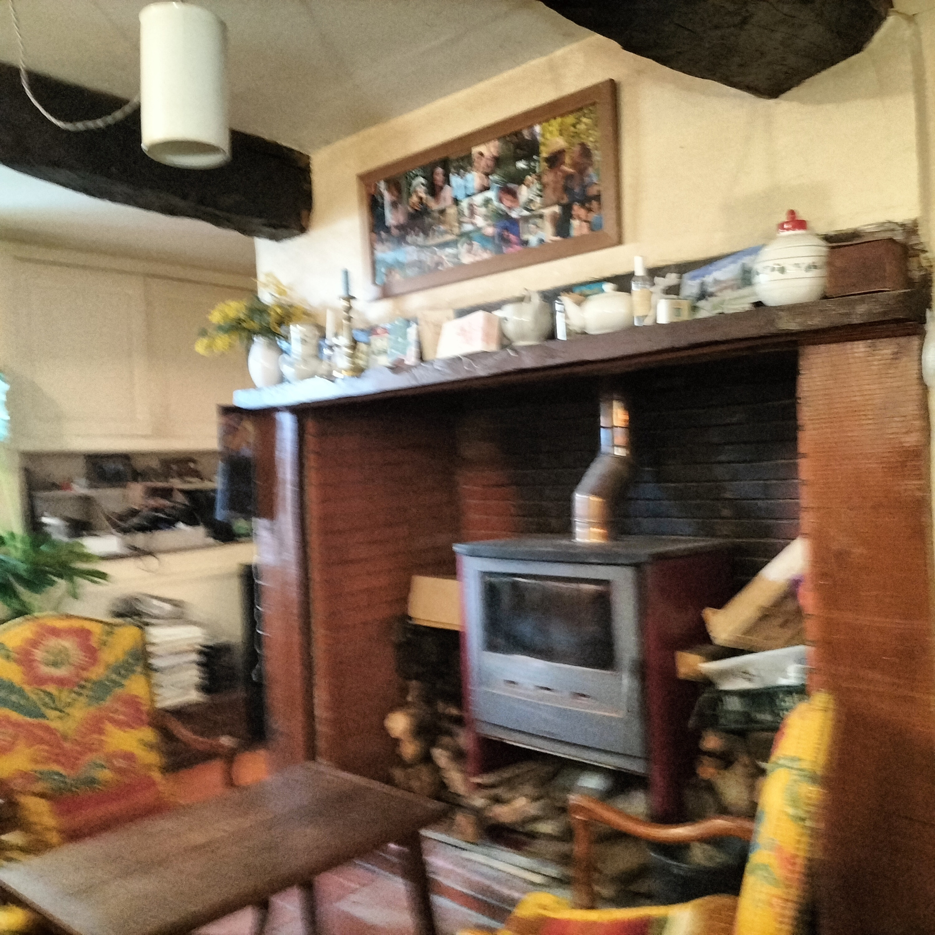 séjour avec cheminée et coin cuisine de 30m²,