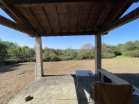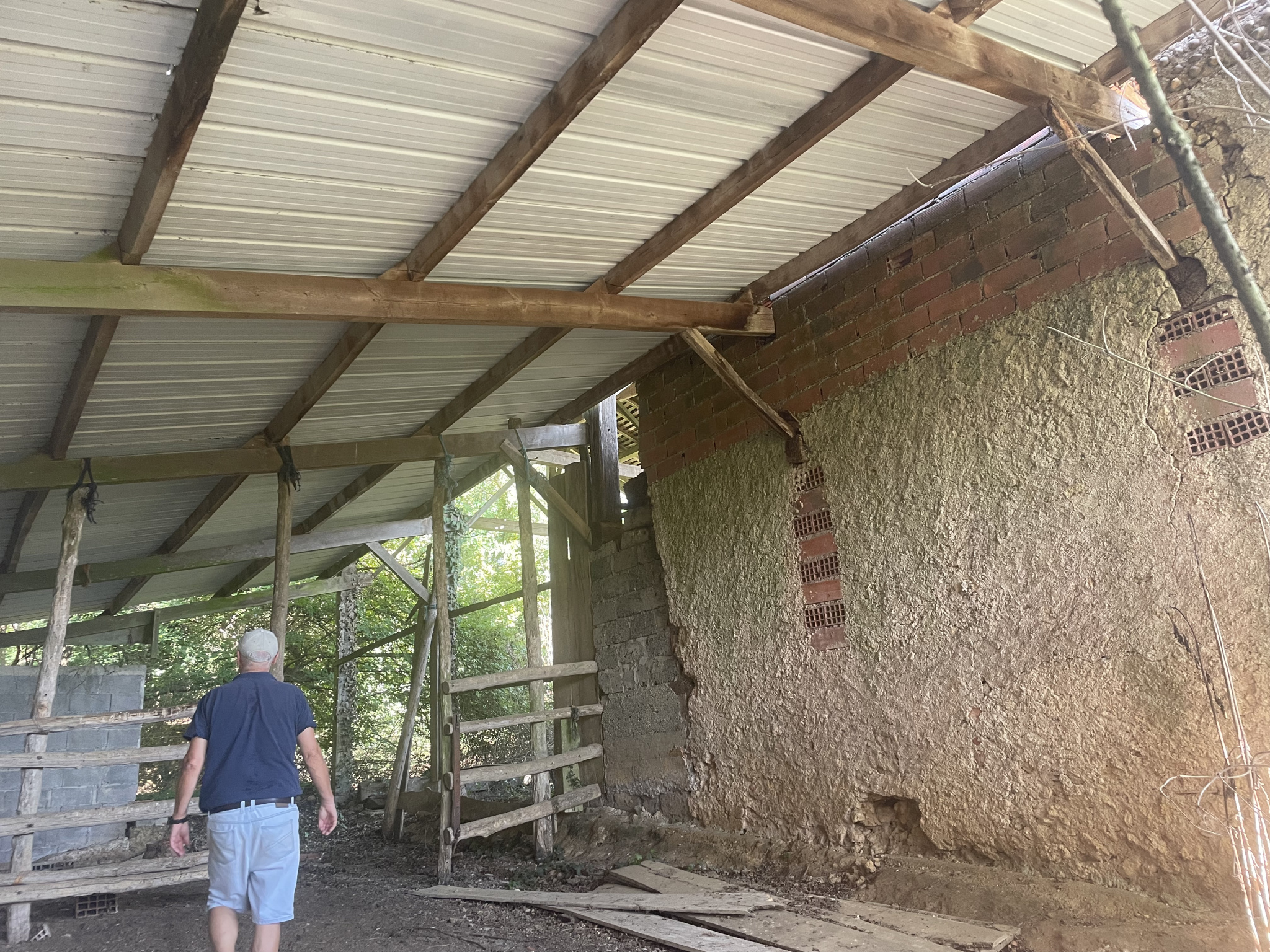 Une ancienne étable, non attenante à la maison, est en mauvais état, mais environ la moitié de la toiture peut être récupérée. Un abri avec une toiture en acier complète les bâtiments.