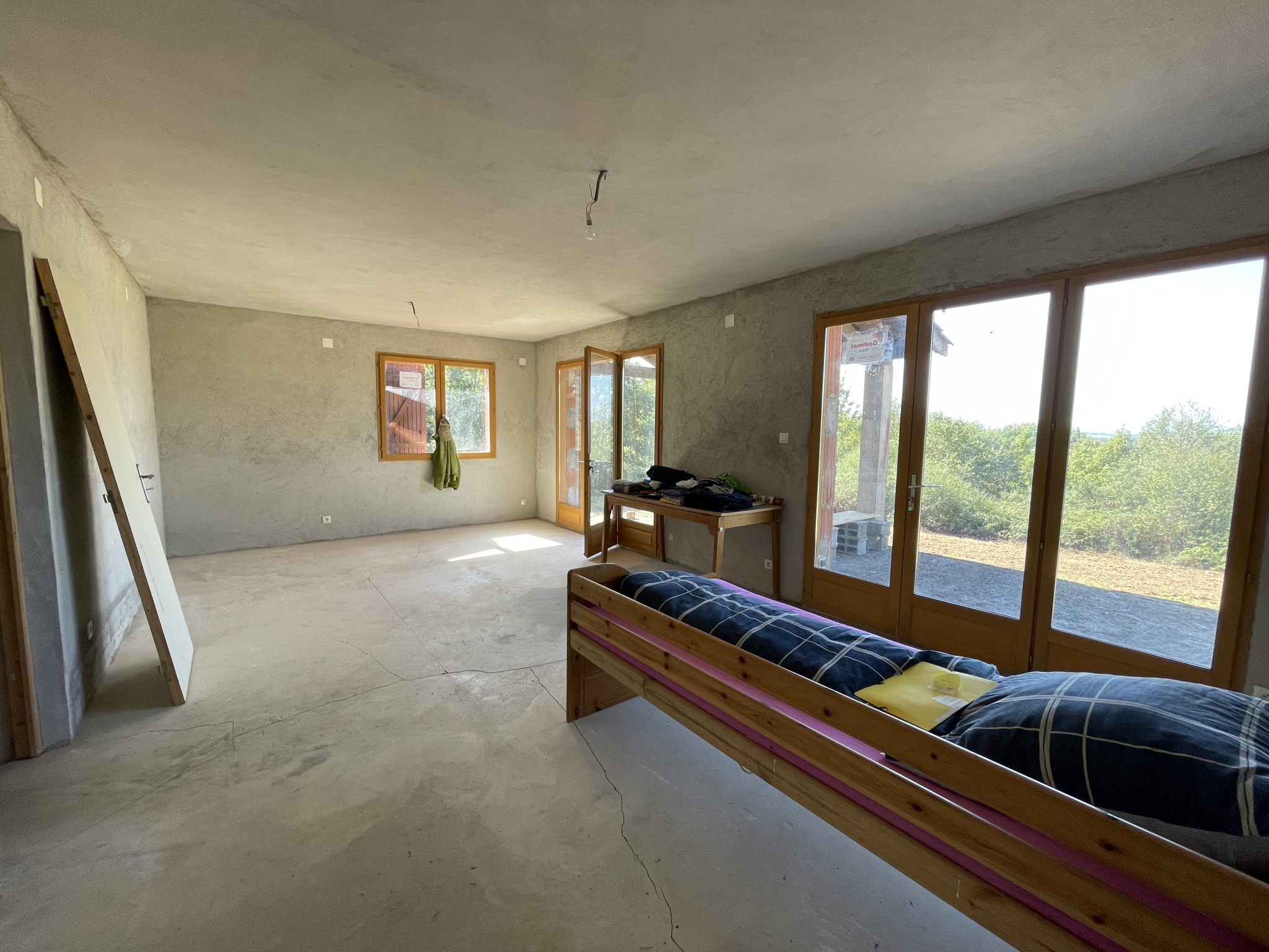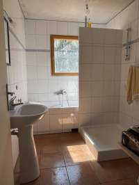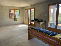 Les travaux à terminer sont l’enduit extérieur, la fosse septique, le carrelage et la réfection de certains volets, chauffage, un conduit cheminée est installé.