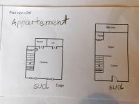 RdCh: un espace cuisine de 22 m² , avec accès à l'extérieur par une véranda vitrée de 2.60m², salon attenant de 20.60m², avec placard et cheminée. Le tout donne un espace de vivre de presque 42.5m² . Appartement : cuisine, séjour avec placard et salle d'eau avec WC