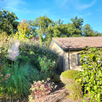 Jardin d’environ 2 000 m² autour de la maison et de la piscine, avec arbres fruitiers, et prairie de 8 500 m² avec abri.