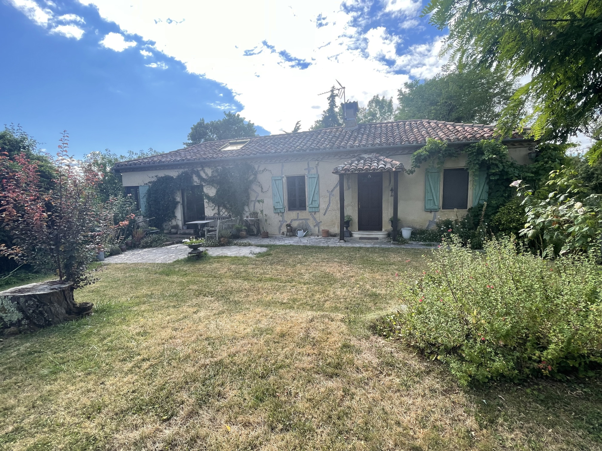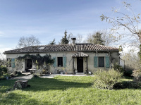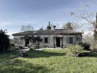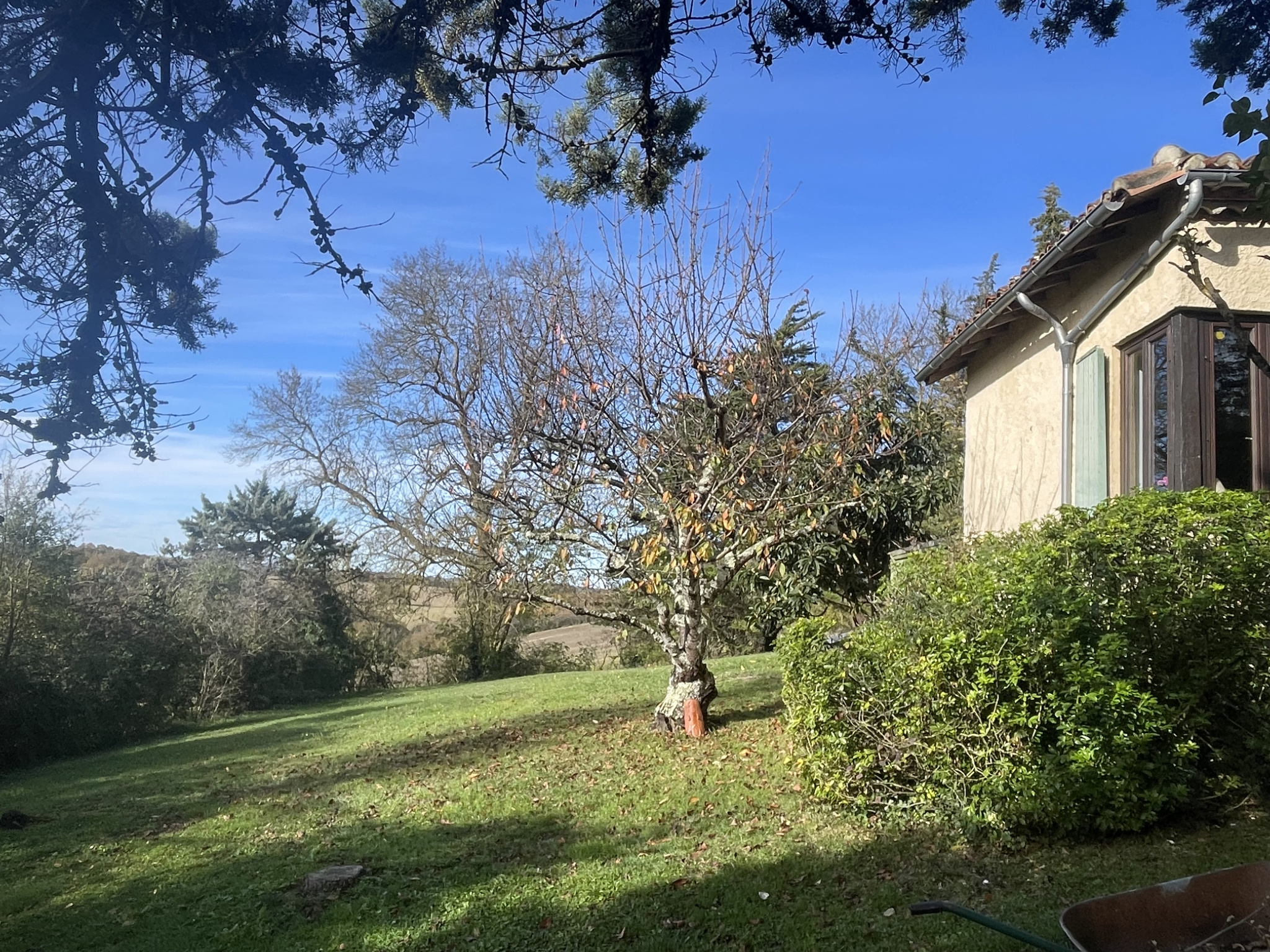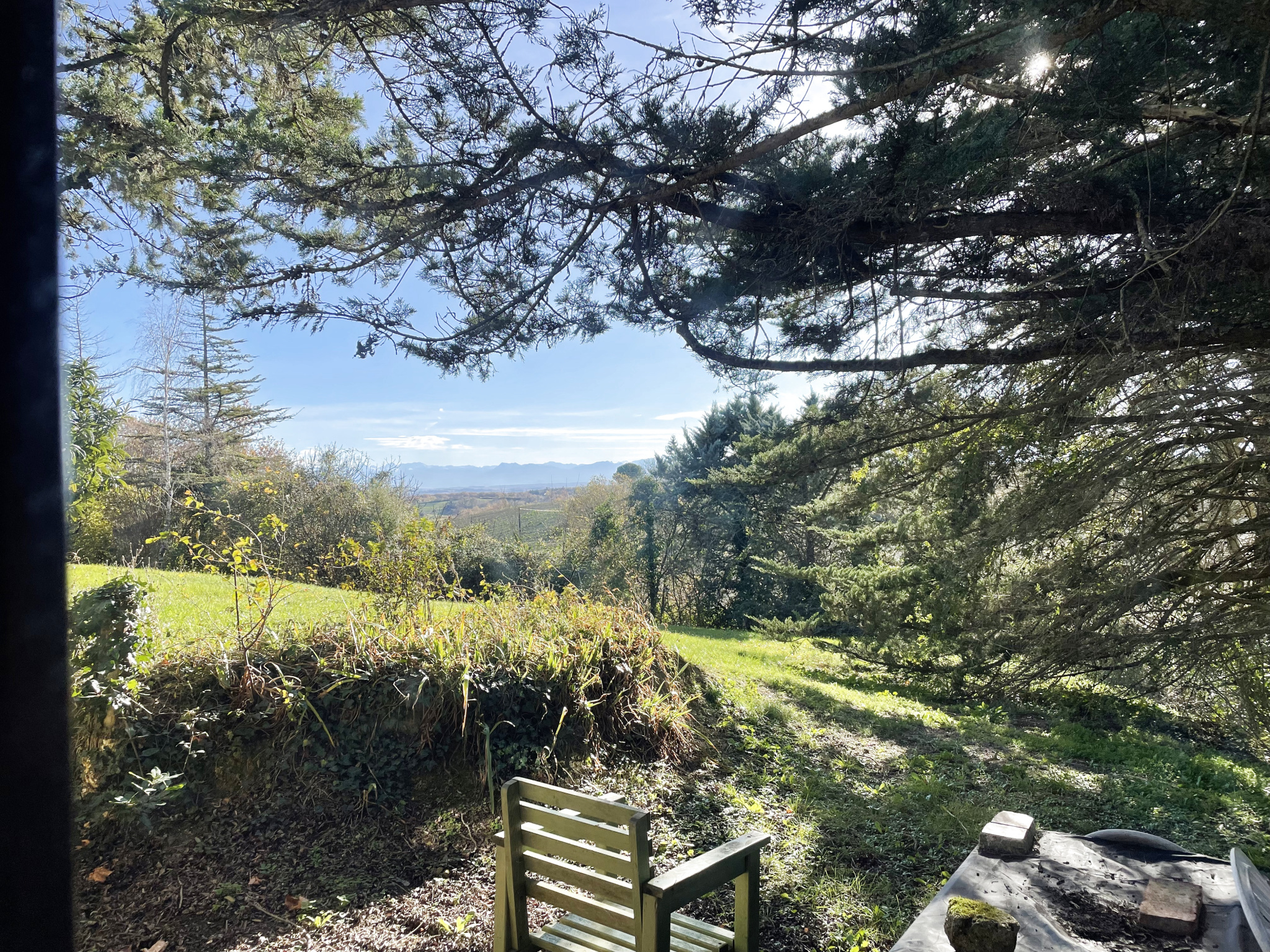 Très belle situation pour cette maison située dans son parc arboré, avec de magnifiques arbres matures. Il s'agit d'une maison ancienne datant de 1841, habitable, avec un salon rénové et une terrasse partiellement couverte offrant une vue dégagée sur les coteaux jusqu'aux Pyrénées.On trouve également un cellier/buanderie avec un accès direct au jardin.
