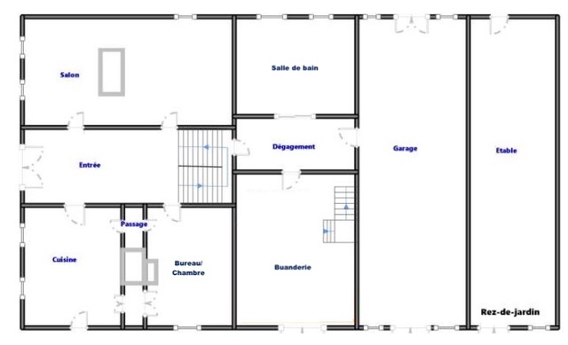 - RDC : Séjour de 50 m² avec poêle à bois et salle d’eau.