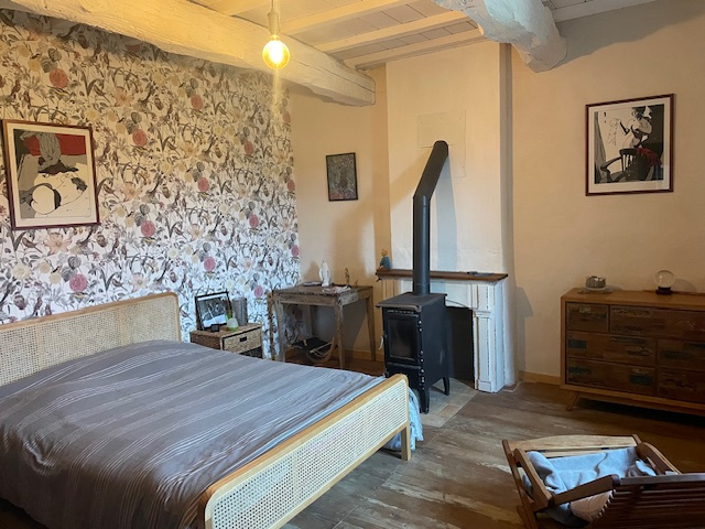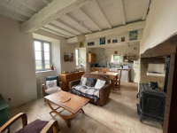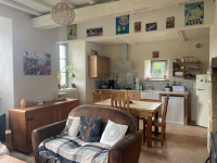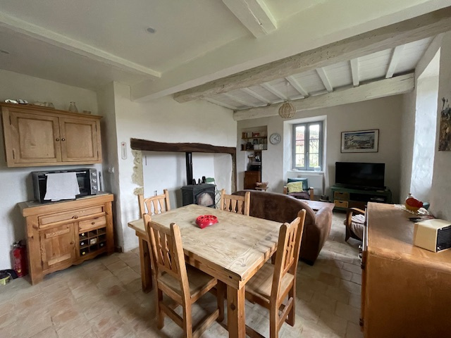 Grande pièce à vivre cuisine/salon 27m² avec poêle bois