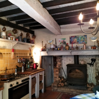 cuisine (environ 18 m²), avec cheminée avec poêle à bois