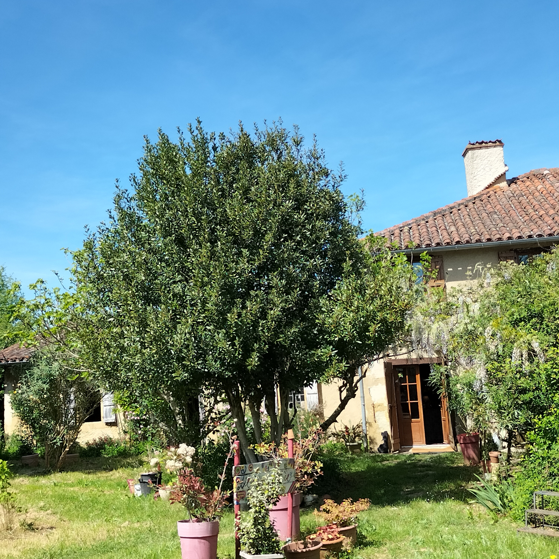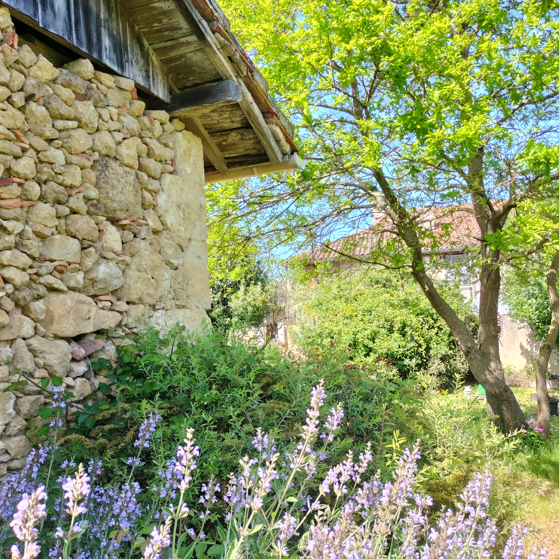 très bien entretenu et comprend de nombreuses plantations ornementales ainsi qu’un beau verger.